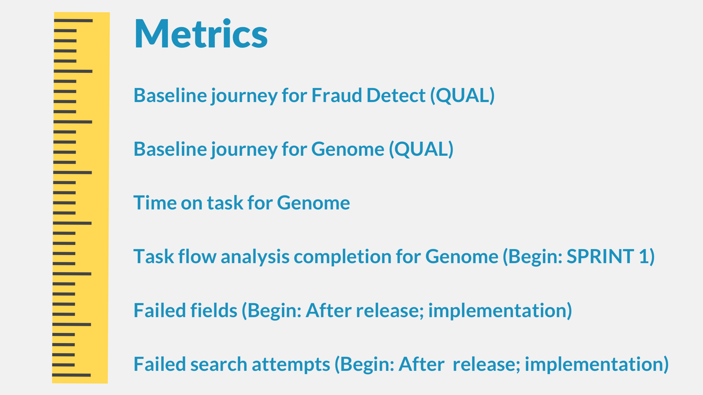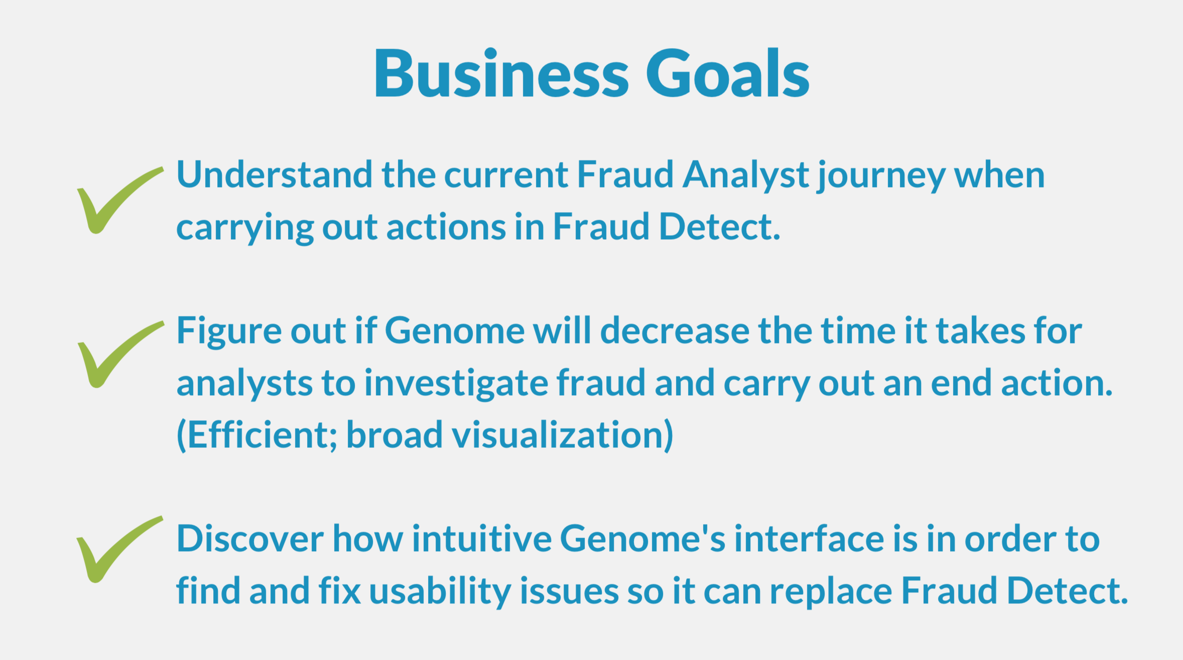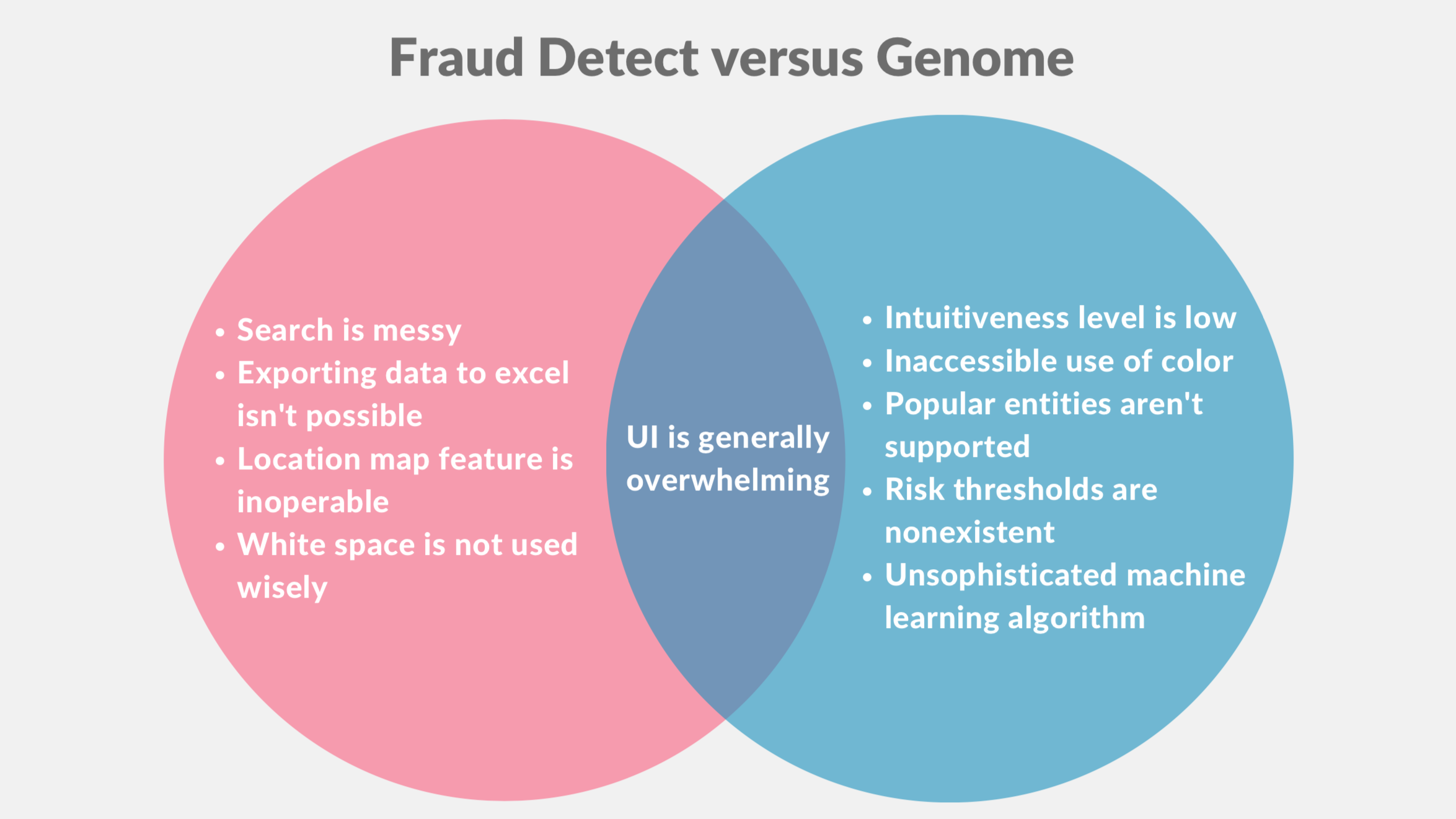 One of my first assignments was to set a baseline with Nike as our main customer. We were testing our old UI called Fraud Detect (a simple case management tool that was heavily customized by the user in order to find patterns) against our new UI called Genome (a link analysis tool that uses machine learning algorithms to find patterns for the user).