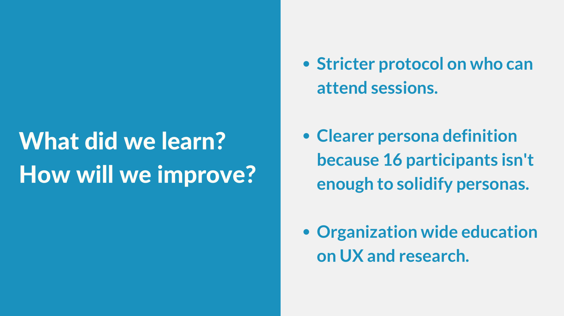 The product was so well-received that other organizations bought and used the product heavily because our platform and algorithm was helpful. We did multiple rounds of maintenance testing after this in order to improve the UI.