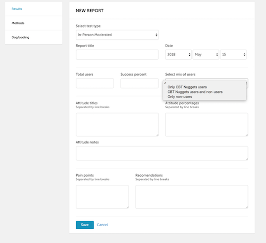 This research tool for CBT Nuggets was created by myself and two other designers.