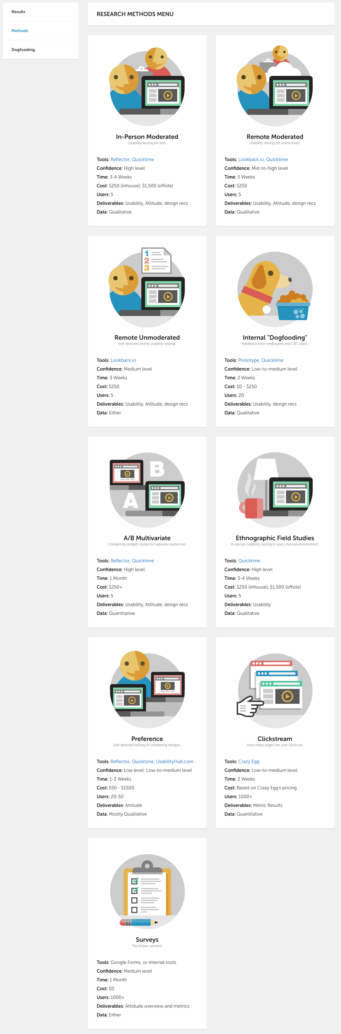 The list of research methods we carried out regularly showcased in a delightful way.
