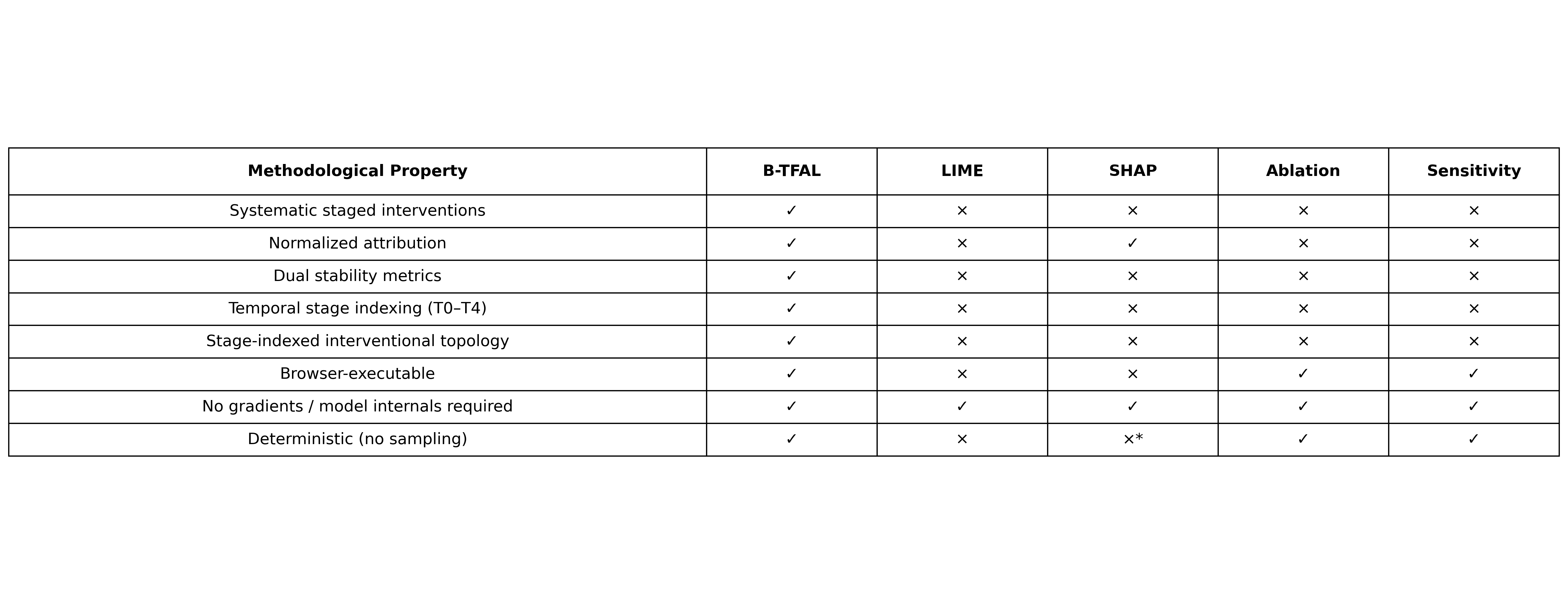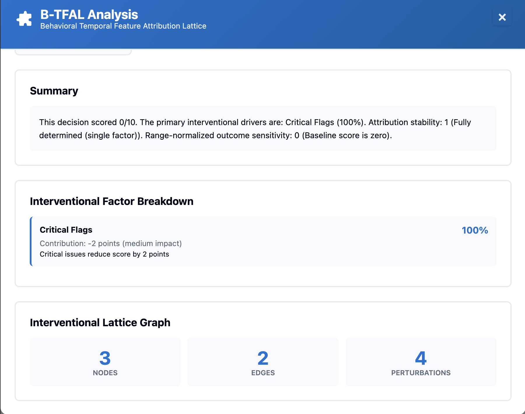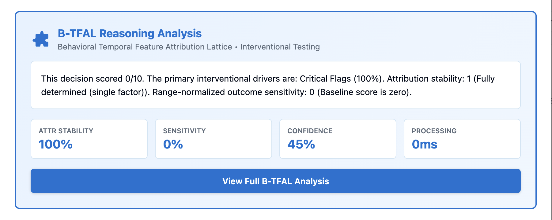 By replacing heuristic explanations with deterministic stress-testing, B-TFAL transforms opaque model outputs into auditable, machine-verifiable decision artifacts.
