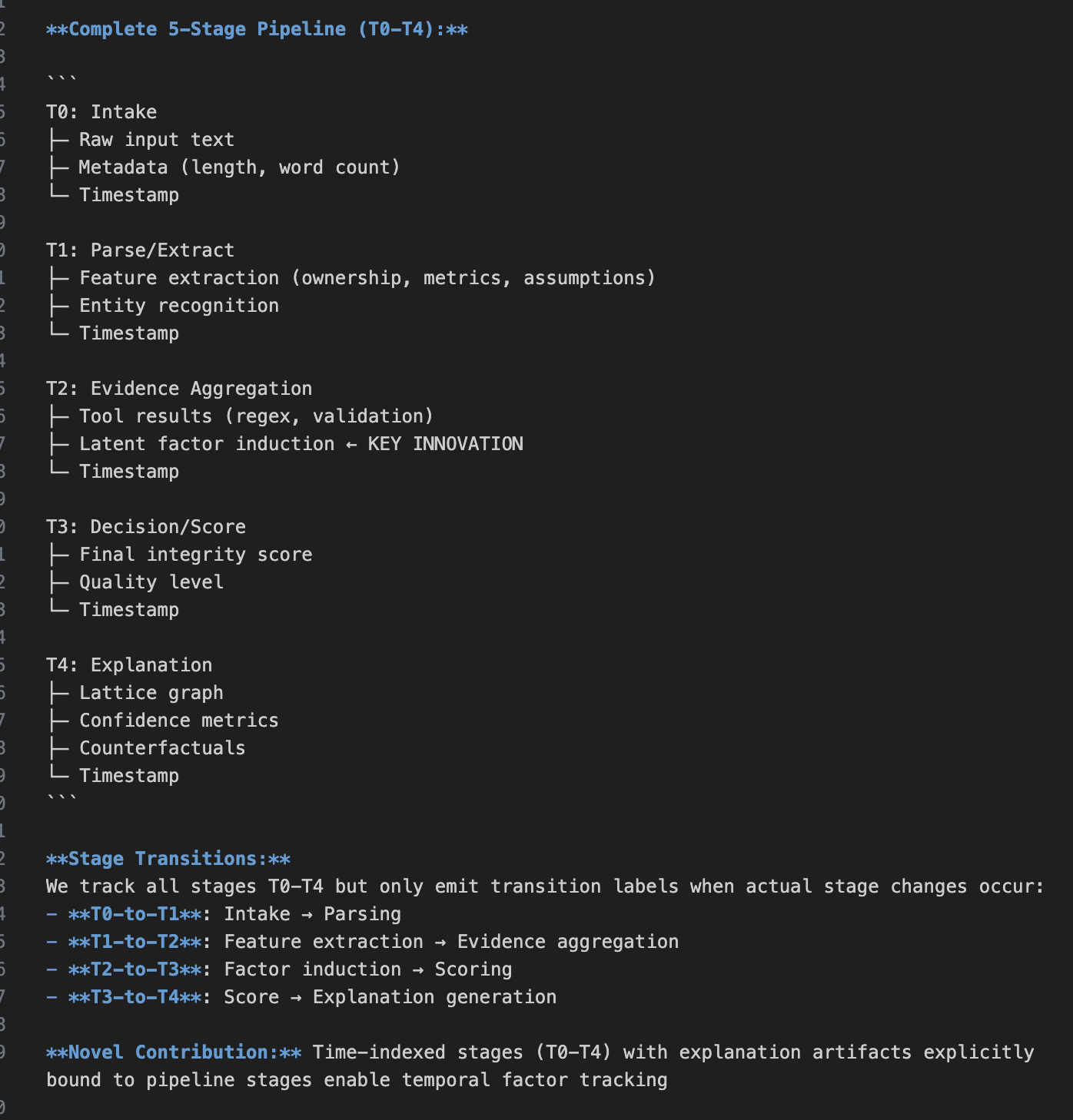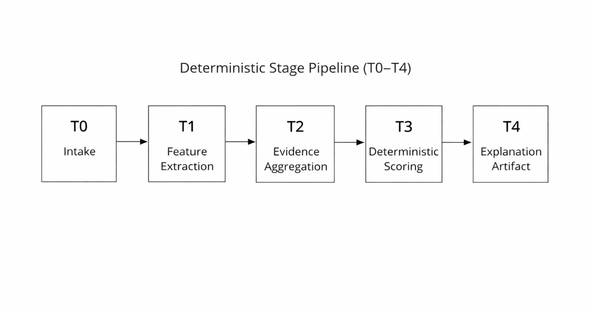 -Explicit stage-indexed intervention pipeline (T0–T4)