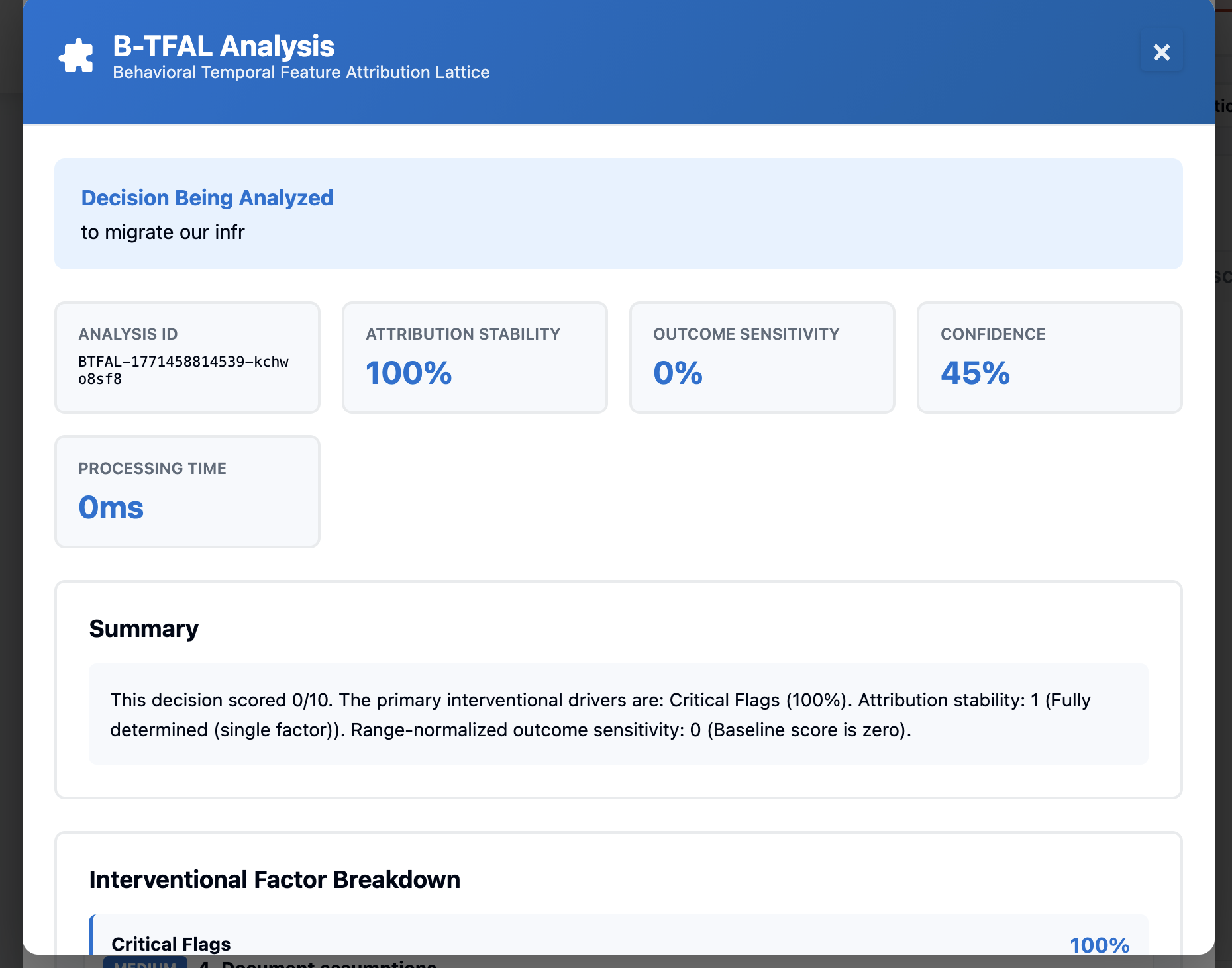 Designing a deterministic, intervention-based decision analysis protocol that produces structured, regulator-grade confidence artifacts from black-box AI systems.